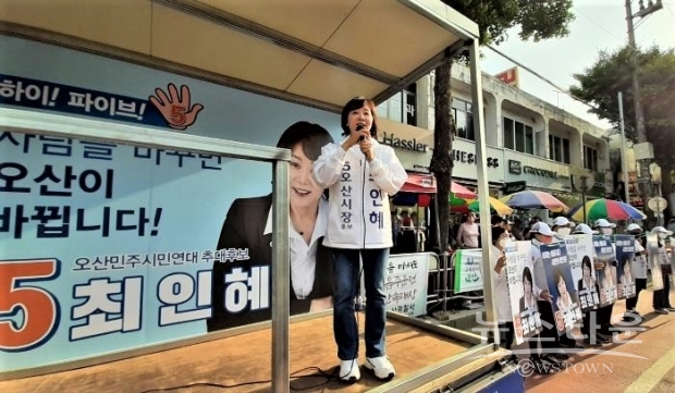 최인혜 오산시장 후보는 “최인혜를 찍으면 제가 당선되고 시민의 정부가 만들어진다”면서 “사람과 정치를 바꿔서 오산을 확 바꾸자”며 지지를 호소했다.