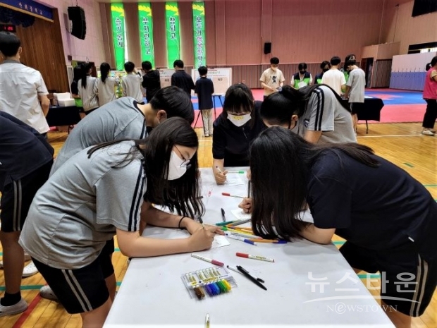 안화중학교(교장 서영란)는 지난 22일부터 24일까지 학생들의 학교생활 만족도를 높이고 자부심과 긍지를 갖도록 하며 교우 간 선후배 간 우정과 사랑을 나눌수 있도록 전교생을 대상으로 ‘너랑 나랑 즐거운 학교 만들기’라는 행사를 마무리했다.