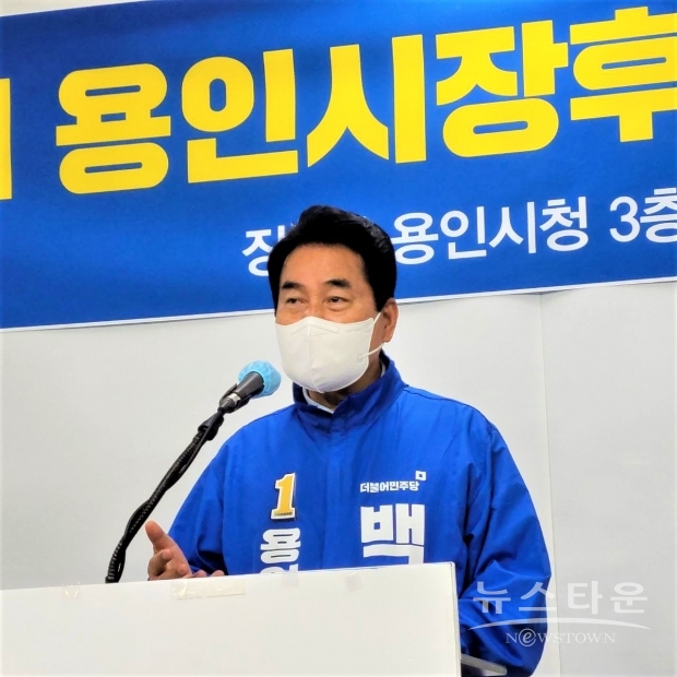 백군기 더불어민주당 용인시장 후보는 17일 용인시청 브리핑룸에서 공약발표회를 갖고 처인·기흥·수지구 3개 권역별 발전계획과 함께 용인 균형발전의 비전을 밝혔다.